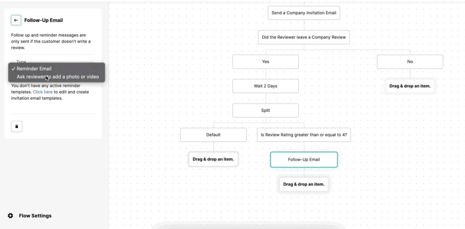 REVIEWS.io Flow, our automation tool for smarter review collection, lets you control exactly when and how requests are sent.